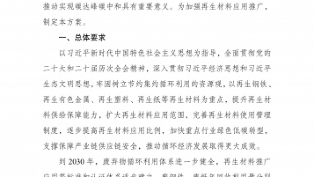 - 我国出台再生材料应用推广行动方案 2030 年多项回收利用指标明确