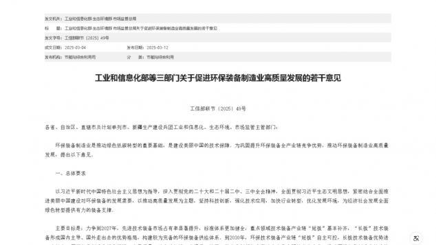 -  工业和信息化部等三部门关于促进环保装备制造业高质量发展的若干意见