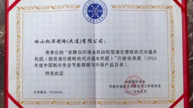 -  填补行业空白冰山松洋制冷创新技术入选《2024年度中国制冷学会节能与生态环境产品目录》